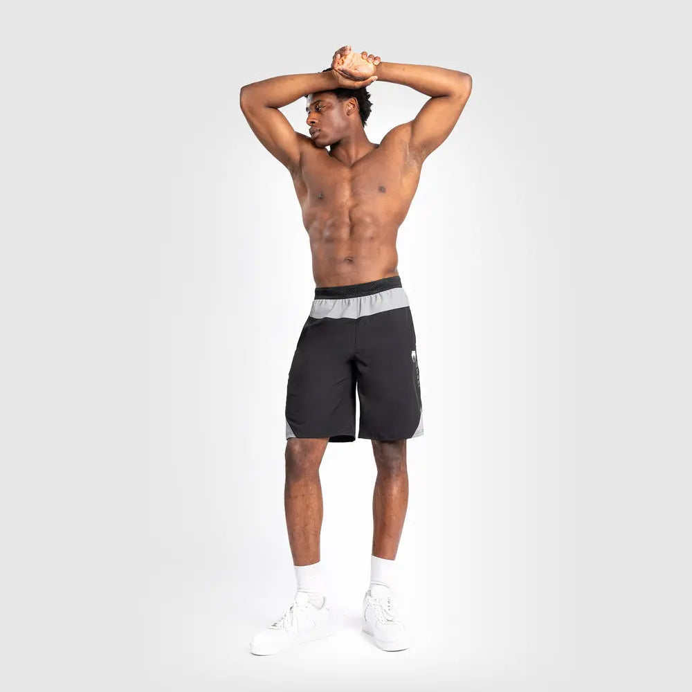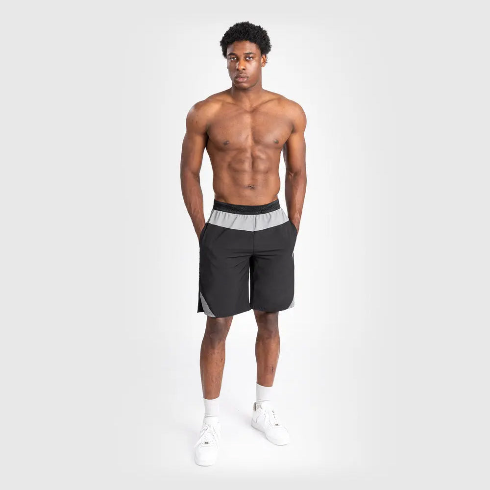 Venum Tempest träningsshorts för män i svart/grå är lätta och flexibla, med en inre kompressionsshorts för stöd och komfort. Det elastiska midjebandet ger en säker passform. Idealisk för löpning, crosstraining och styrketräning.