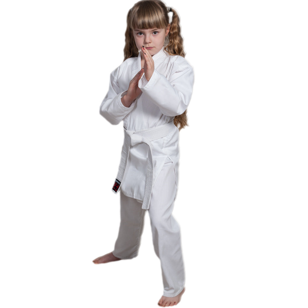 Fungerar utmärkt även till Jiu-jitsu och liknande med jacka, byxa och vitt bälte i ett set.