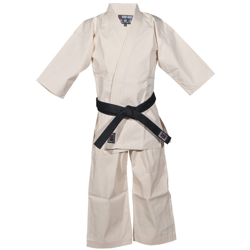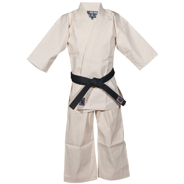 Designad enligt anvisningar från Ashihara karate. Lång jacka (når halvvägs ner för låren) med korta ärmar och fullängdsbyxor med snörning. Stilbrodyr på bröst, ärm och rygg.